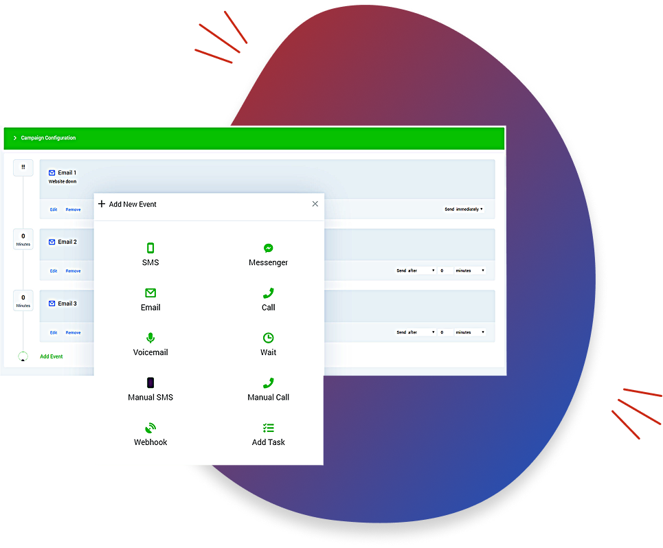Build custom nurture campaigns that send text messages, emails, voicemails, and even Facebook messages to convert leads automatically.
